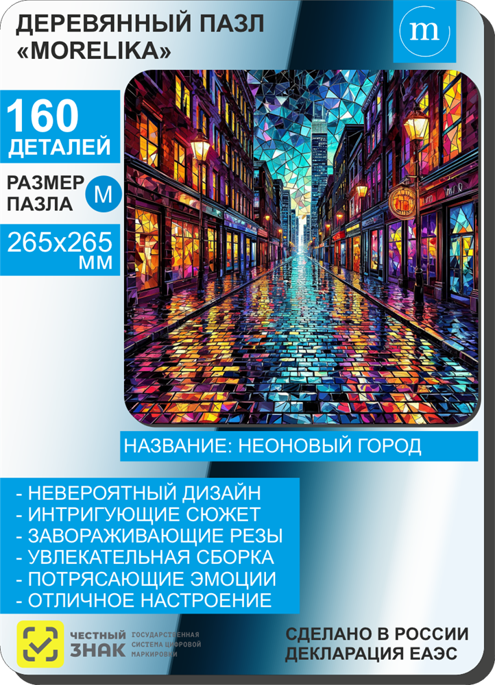 Деревянный пазл Morelika - Неоновый город